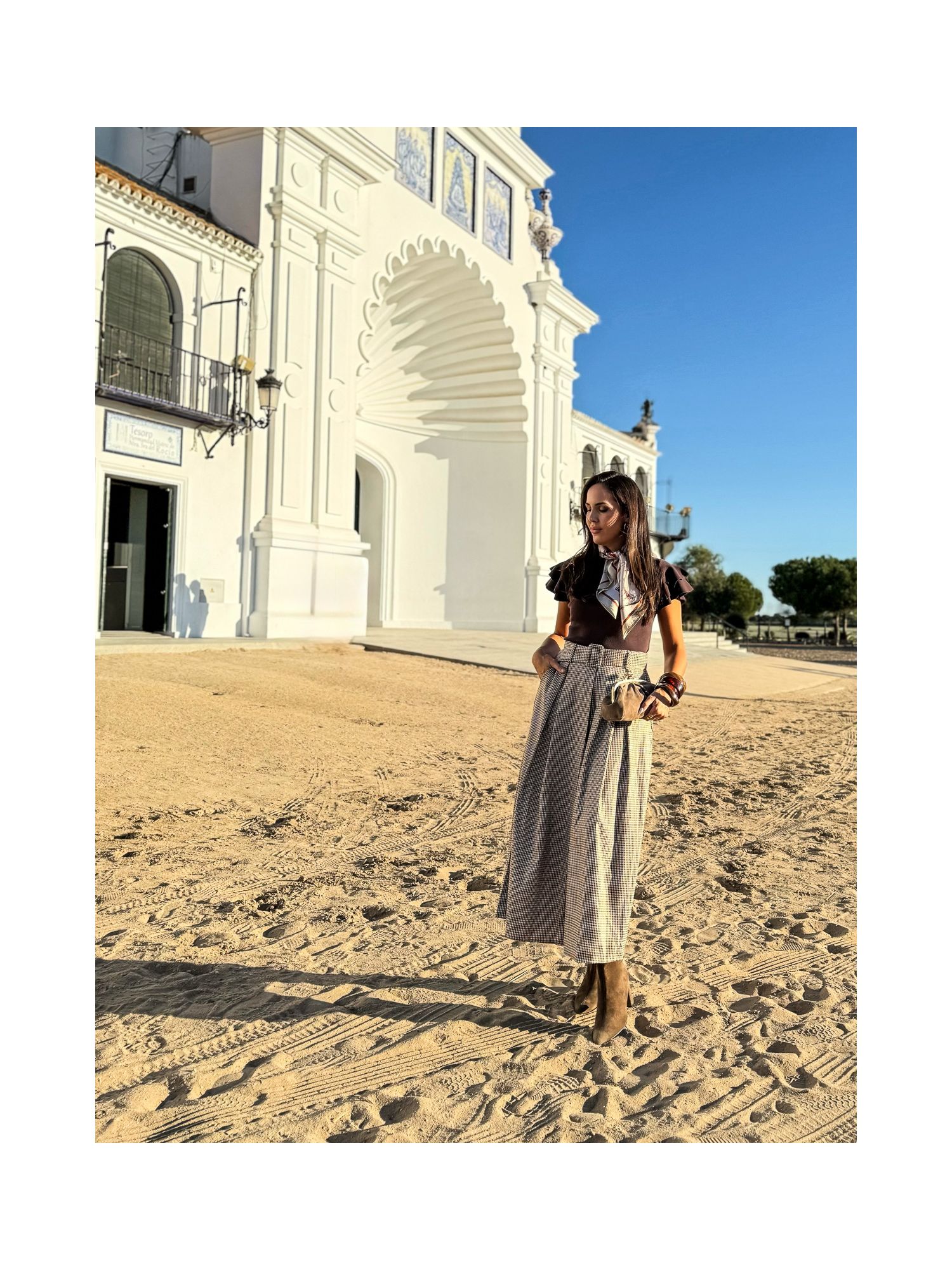 Falda tablas pata gallo variada marrón