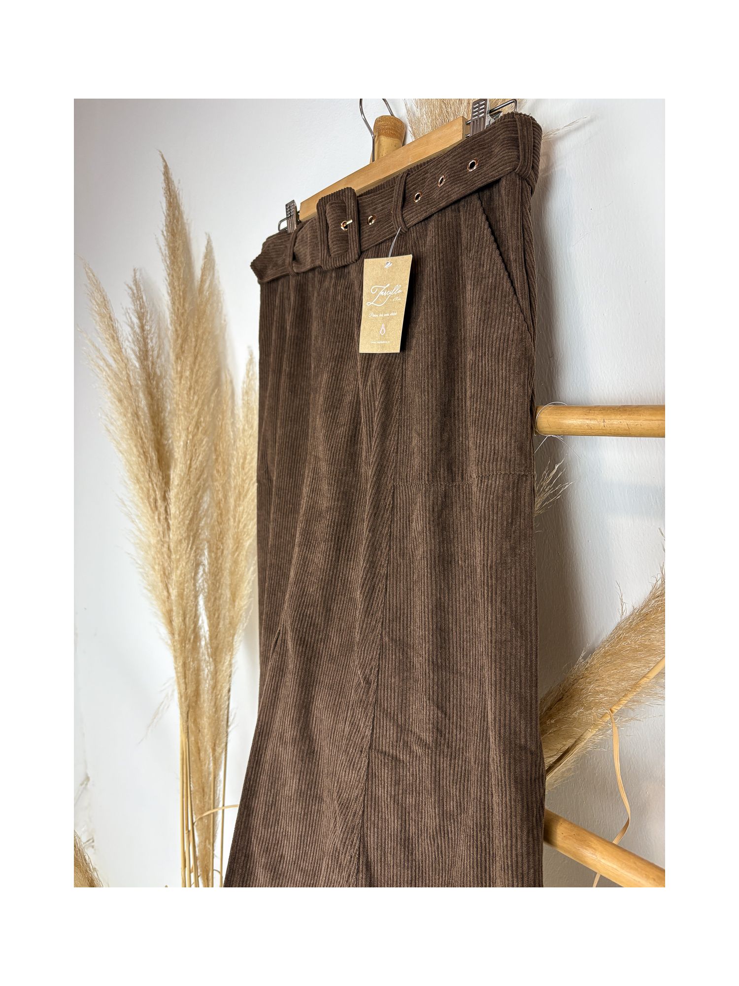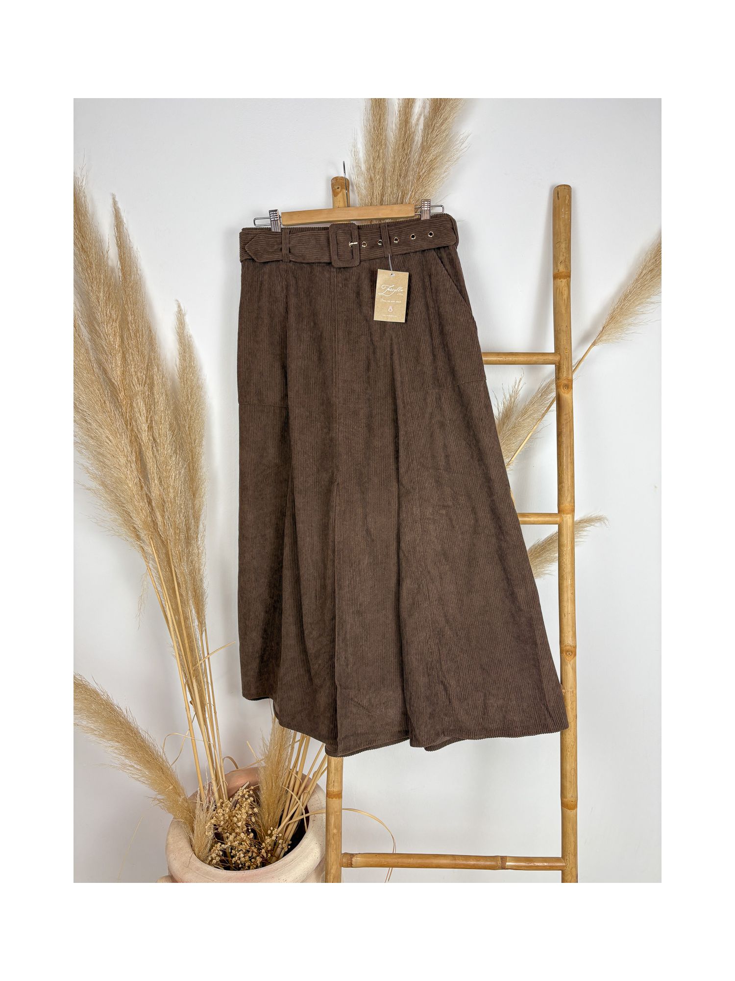 Falda de pana marrón chocolate con cinturon