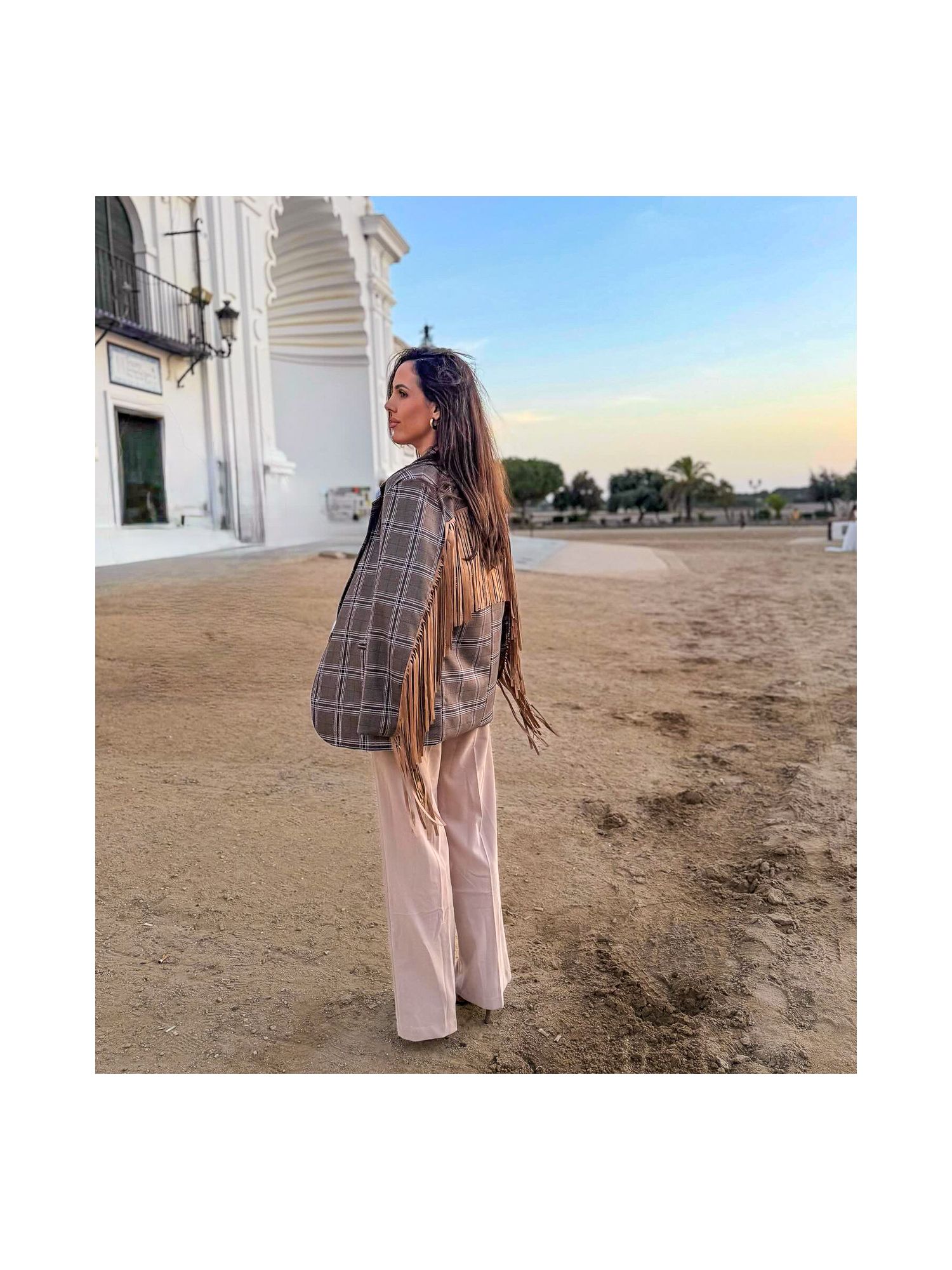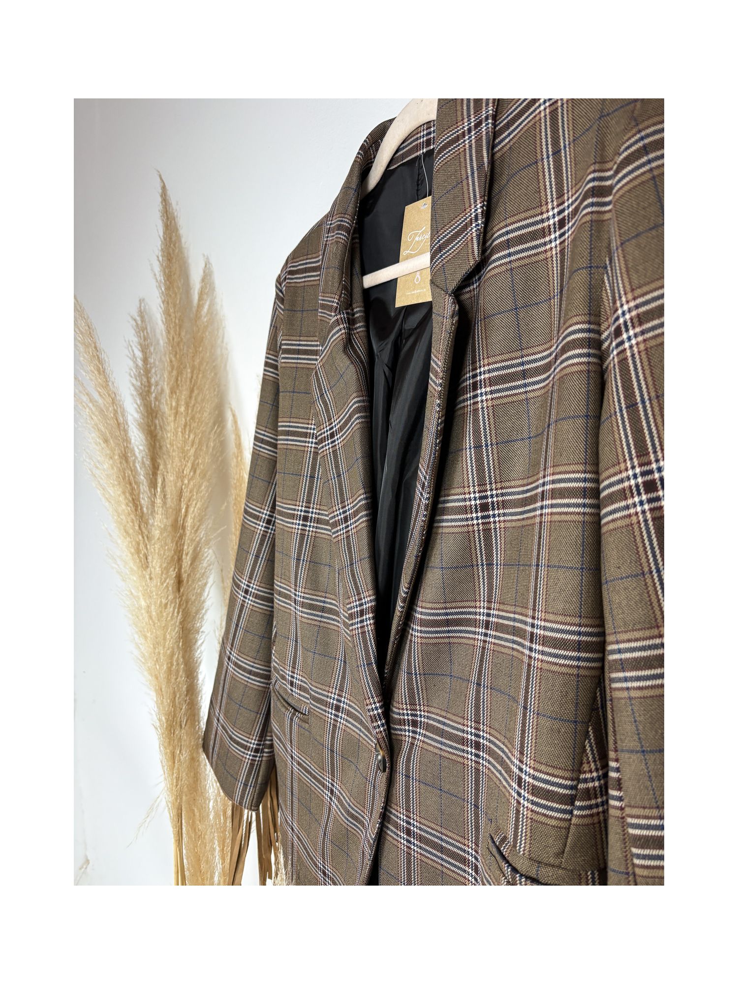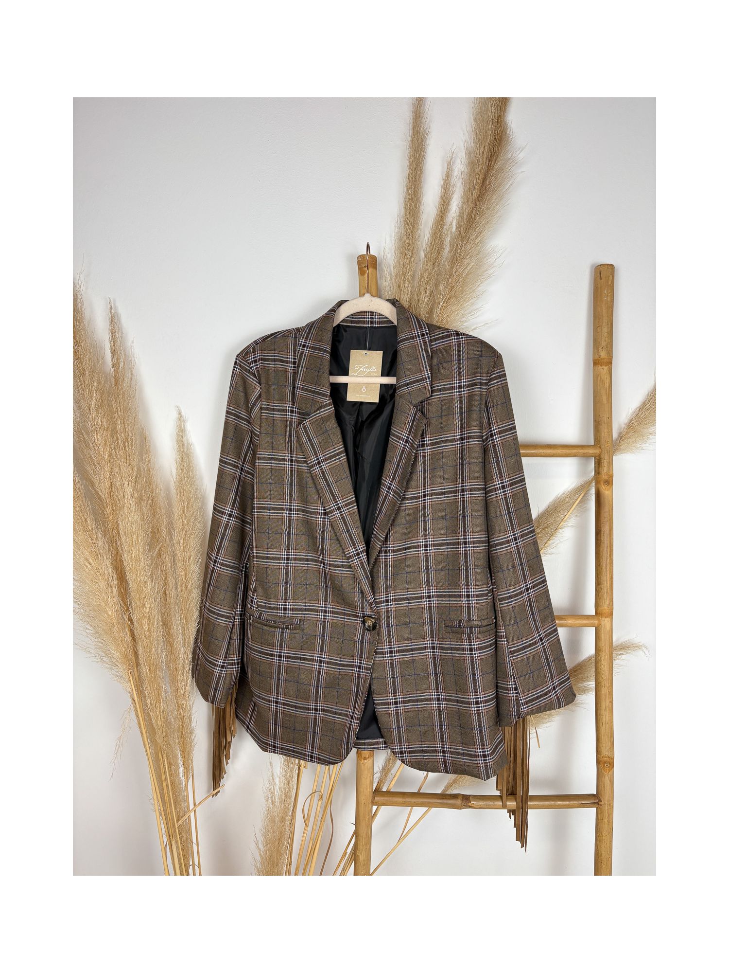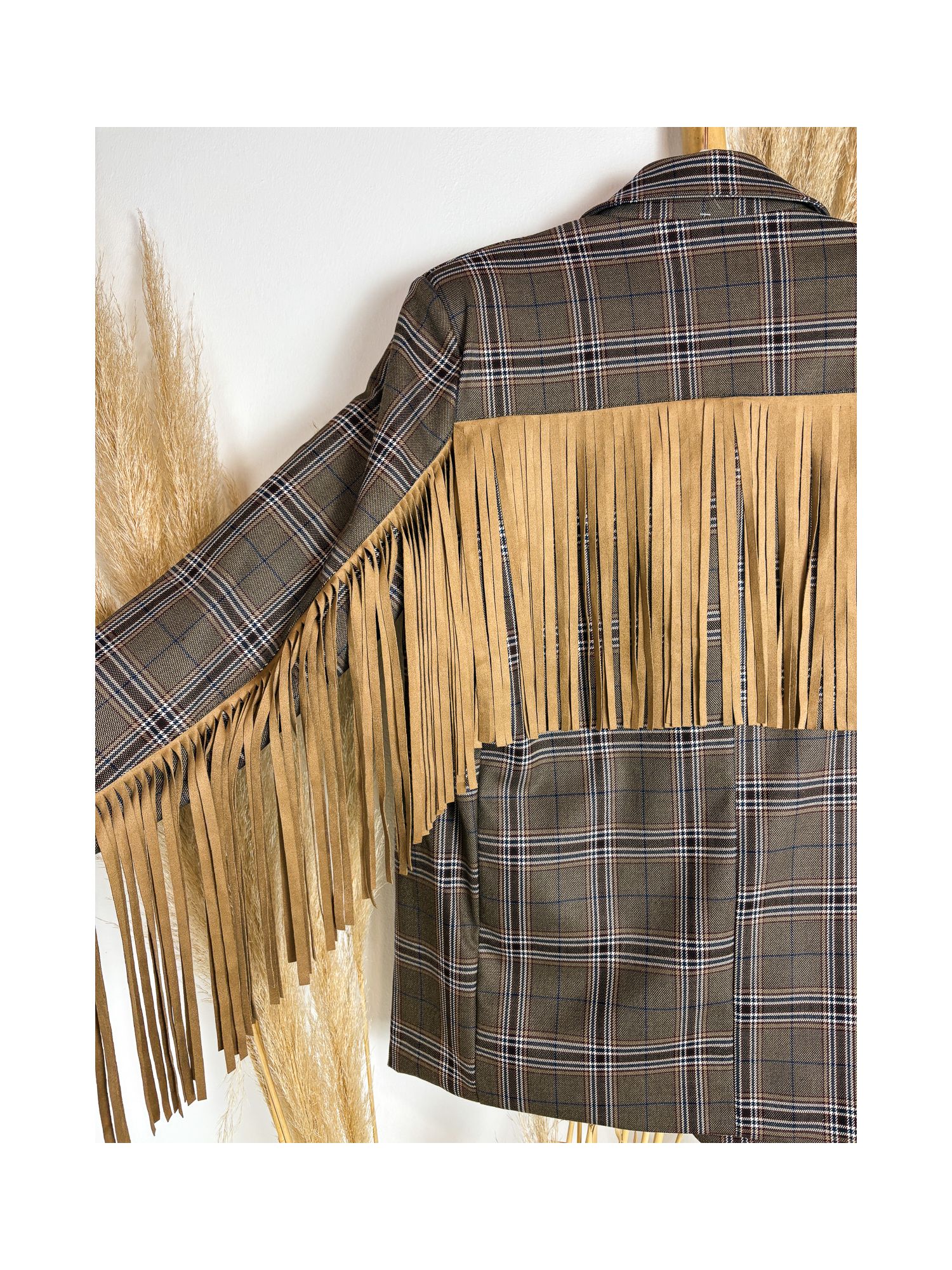 Americana chocolate enflecada en la espalda