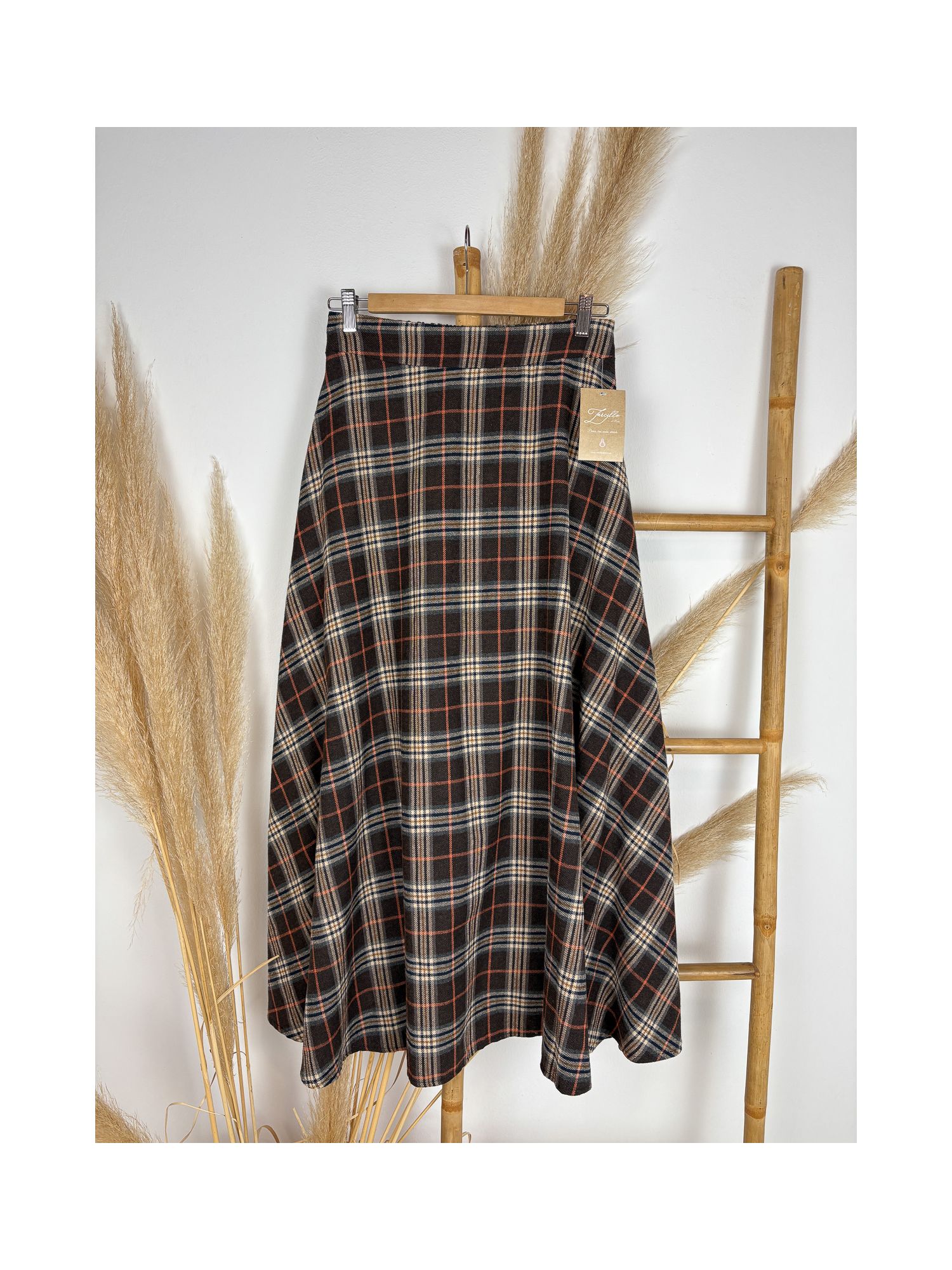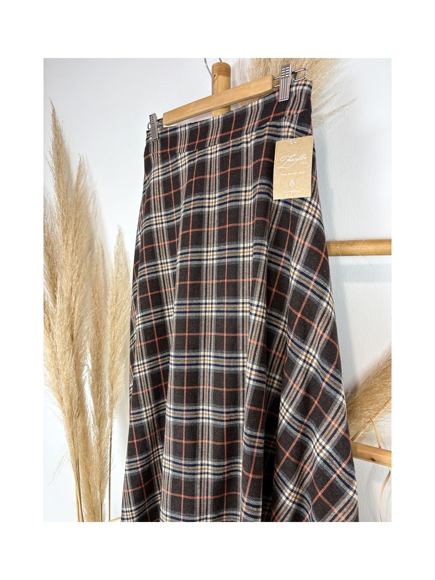 Falda de cuadros escocés marrrón chocolate