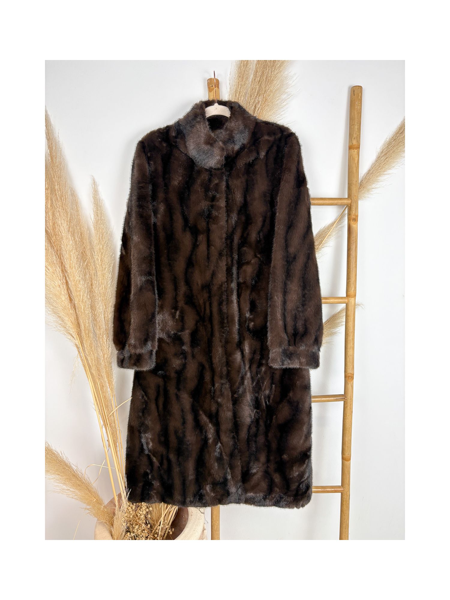 Maxi abrigo de pelo marrón chocolate