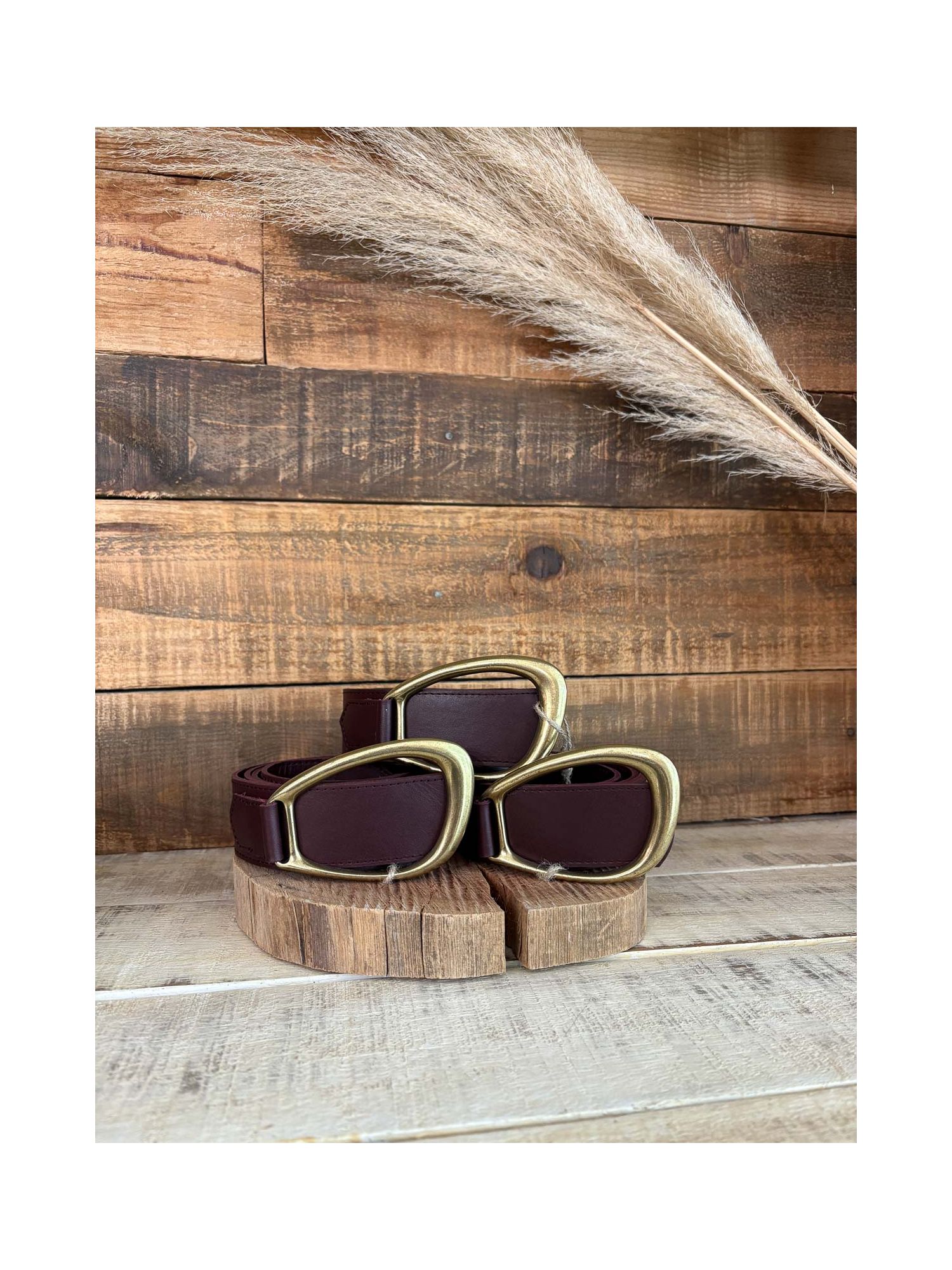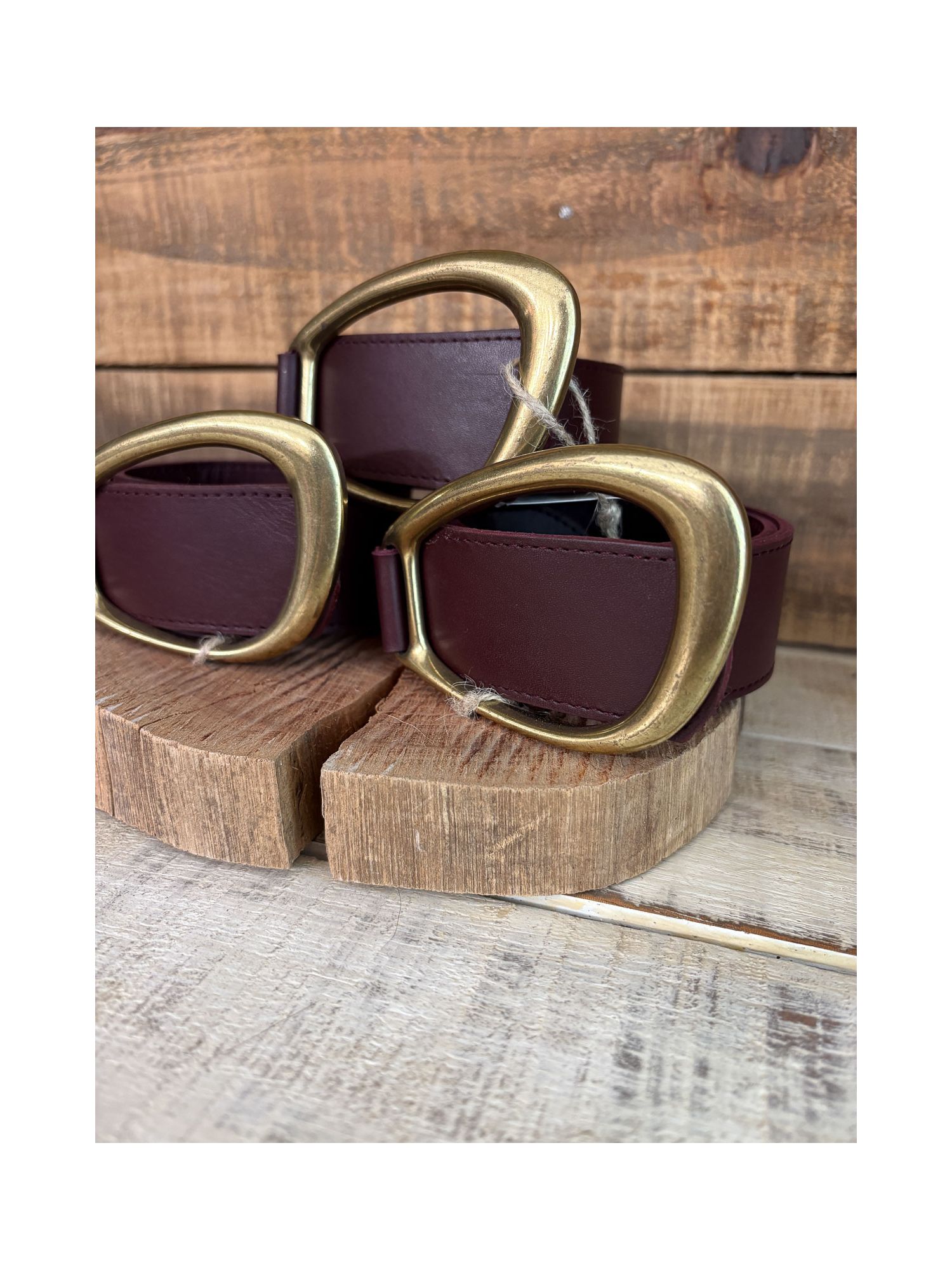 Cinturón cereza de piel hebilla ovalada asimétrica