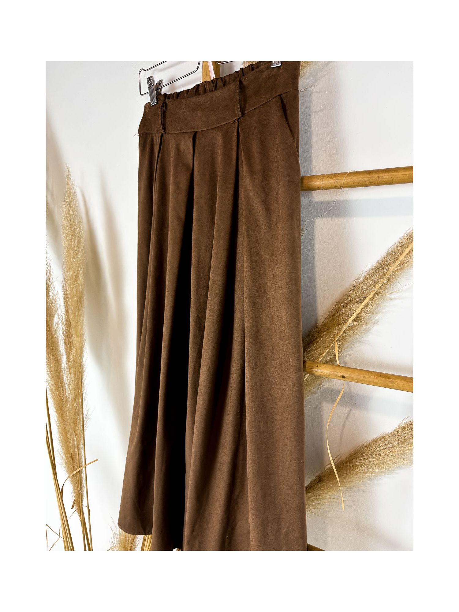 Falda larga de antelina camel