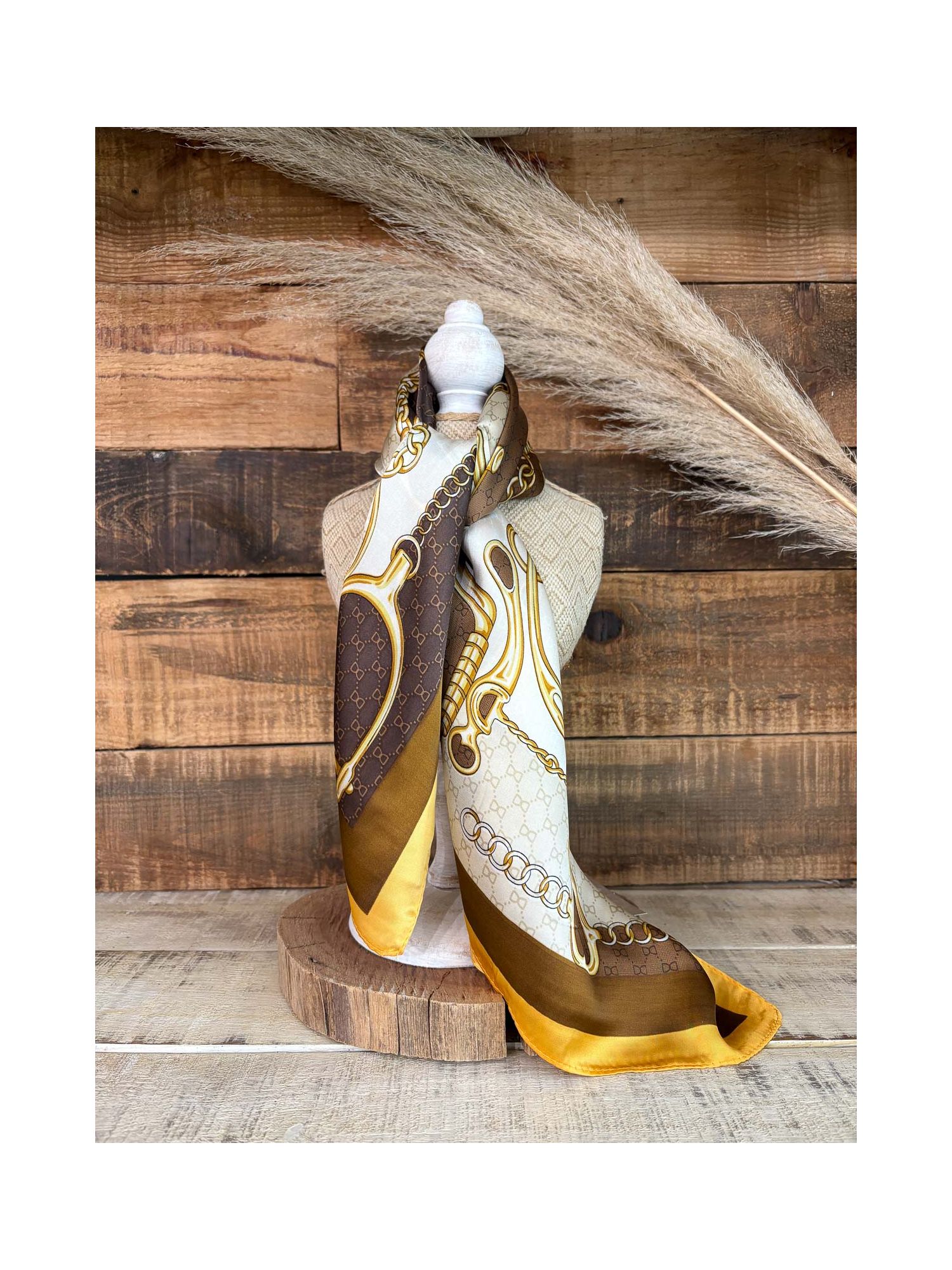 Pañuelo estribos y cadenas tonos amarillo y camel