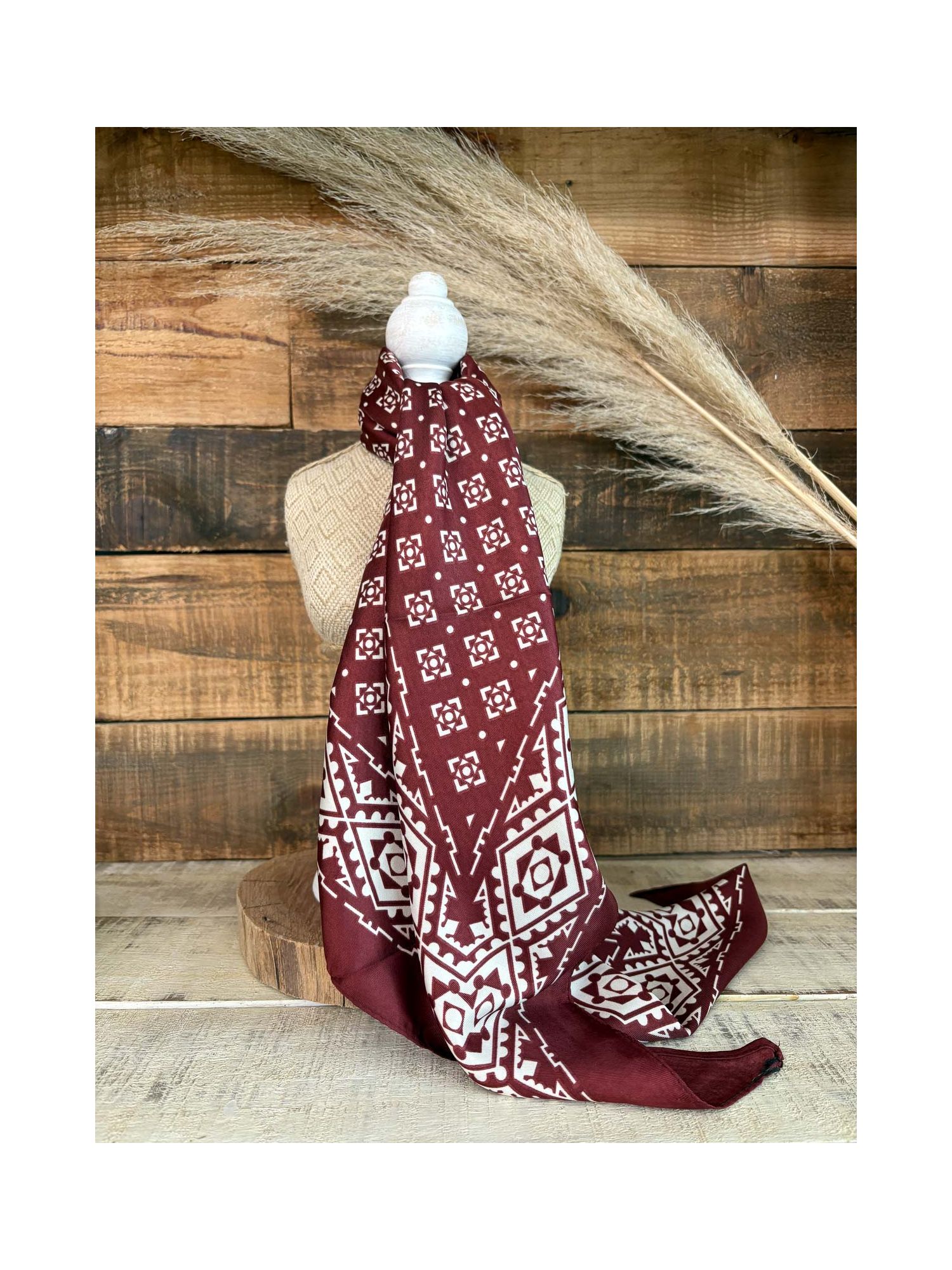 Pañuelo estampado burdeos y beige