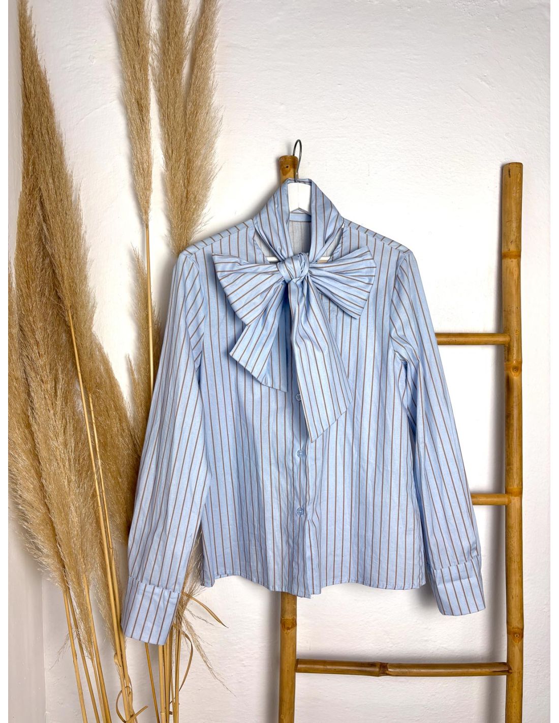 Blusa maxilazada con rayas azul