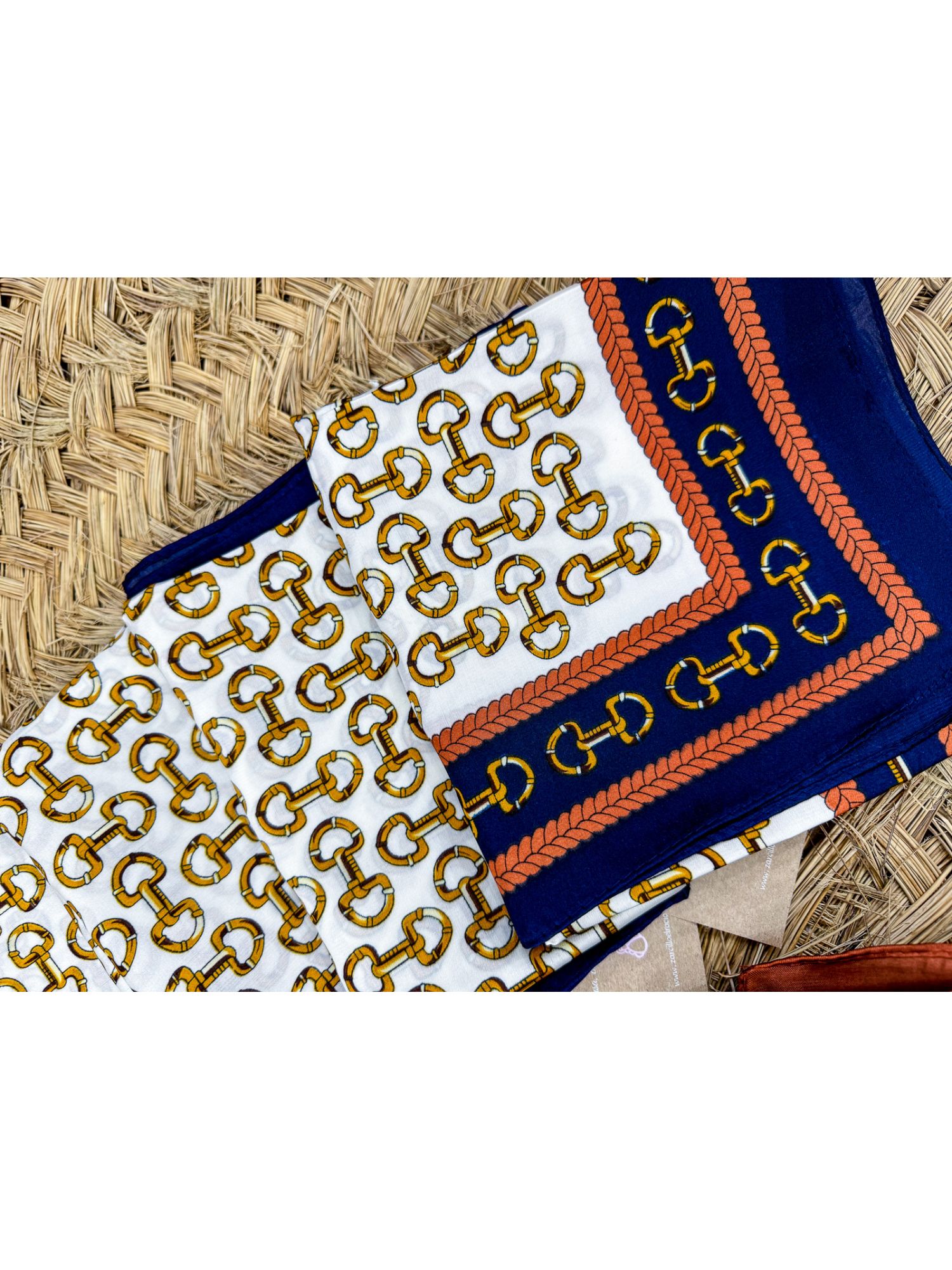 Pañuelo 70x70 mil filetes dorados cenefa azul marino