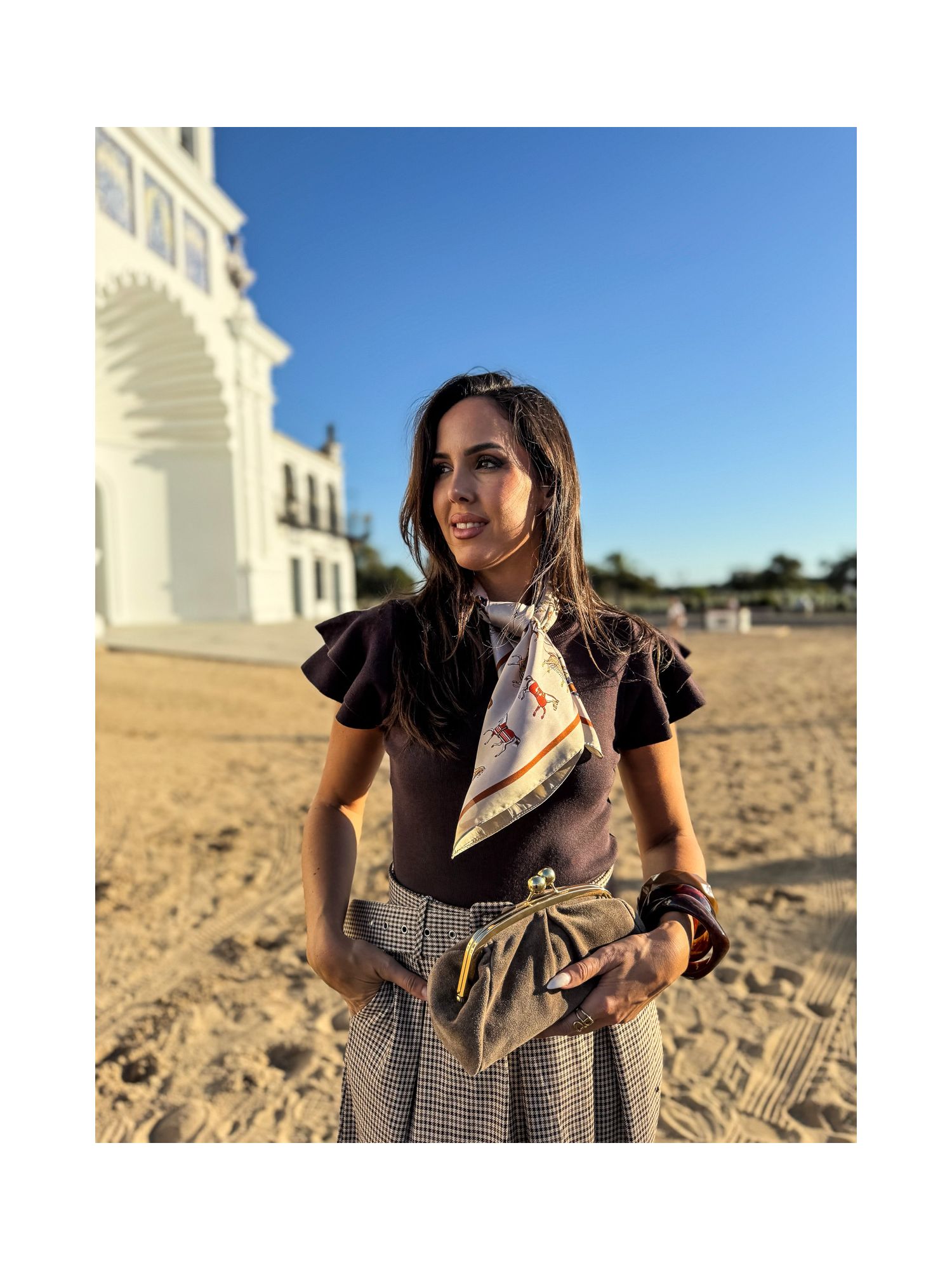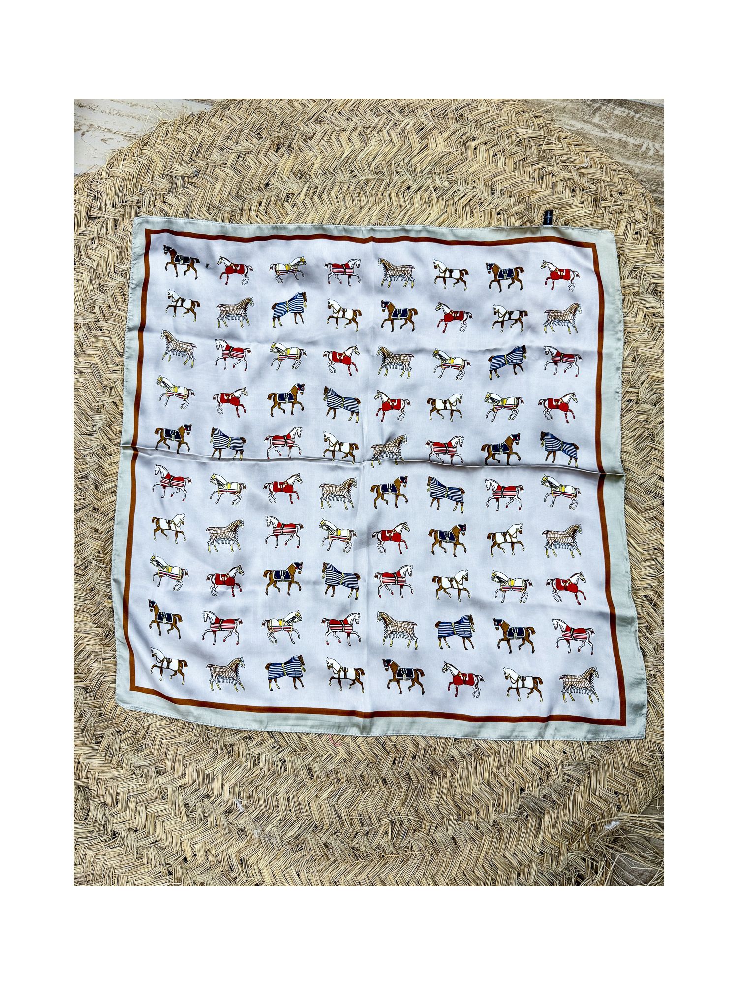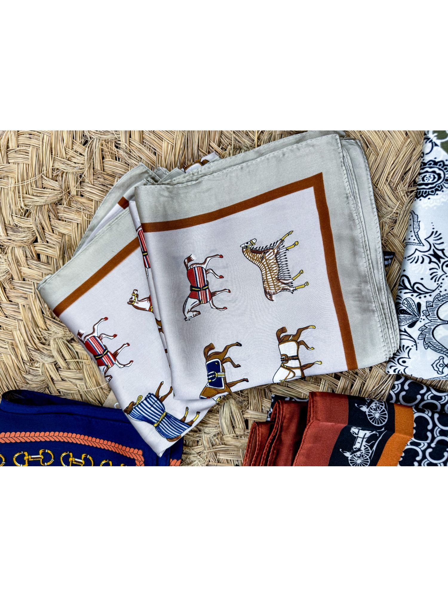 Pañuelo 80x80 mil caballos fondo topo cenefa marrón