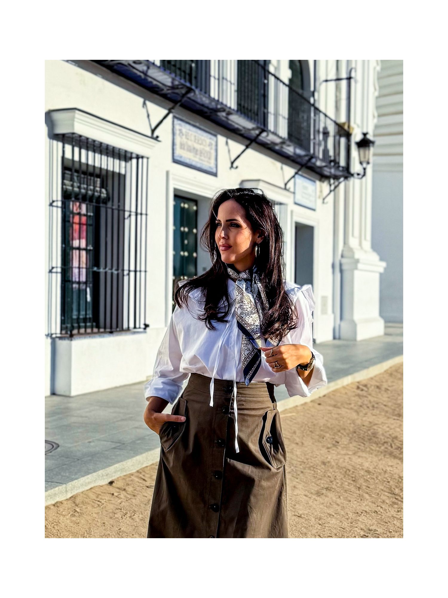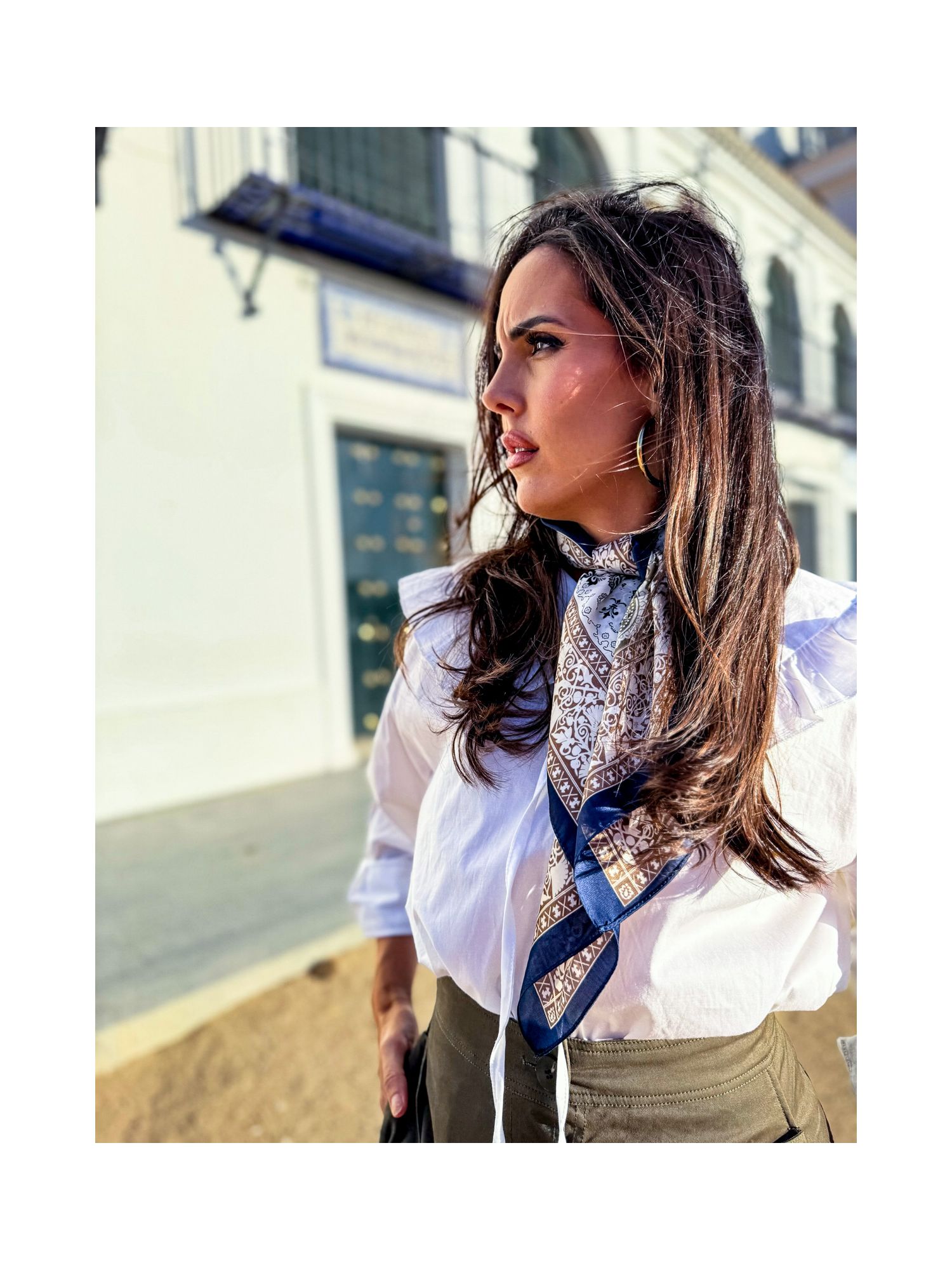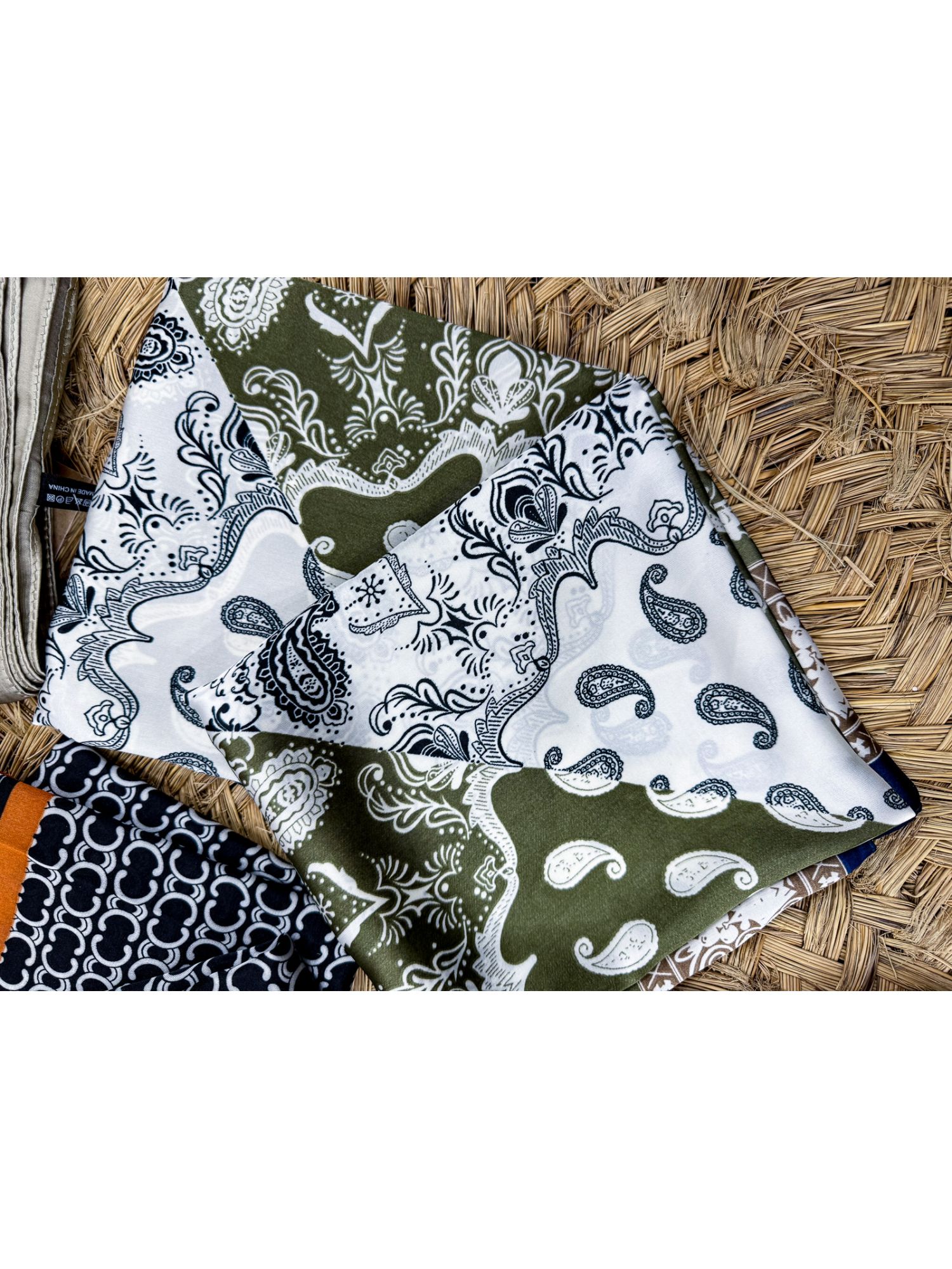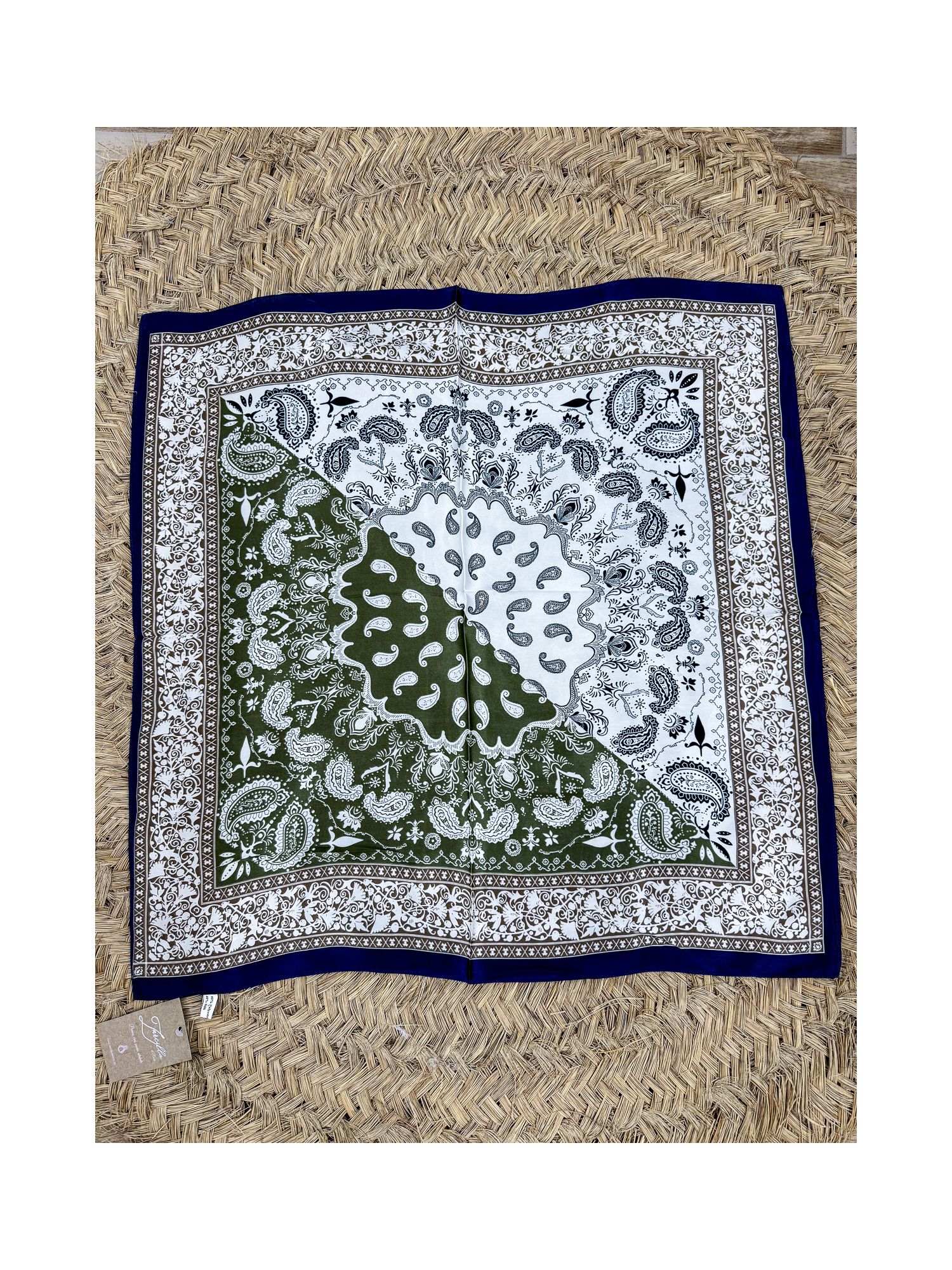 Pañuelo seda 80x80 cachemir tricolor y cenefa marrón